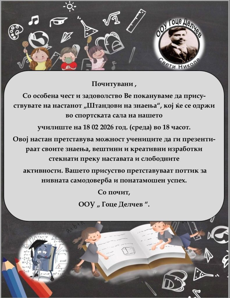 Во склоп на оваа манифестација ќе се реализира и донаторска акција на книги за збогатување на нашата училишна библиотека, затоа пожелно е да понесете по една книга и скромно ќе ги обновиме содржините во библиотека а со тоа ќе придонесеме во растењето на знаењата на нашите ученици!!!