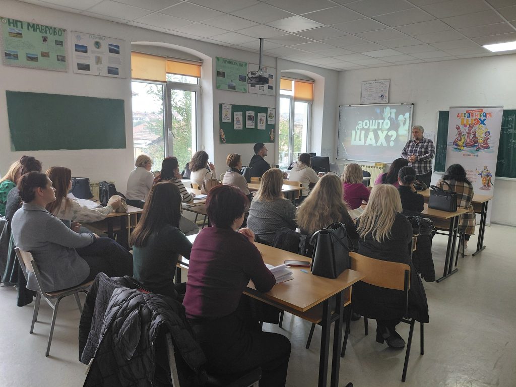 Благодариме на Шаховска федерација на Македонија и наставникот Орце Данчевски за прекрасната презентација на придобивките и можностите од Шах во секое училиште. Благодариме и на директорката Сузана Дерменџиева и за покажаниот интерес од страна на наставниците . Се надеваме дека конечно шахот ќе заживее и ќе го добие заслуженото место меѓу наставната програма.