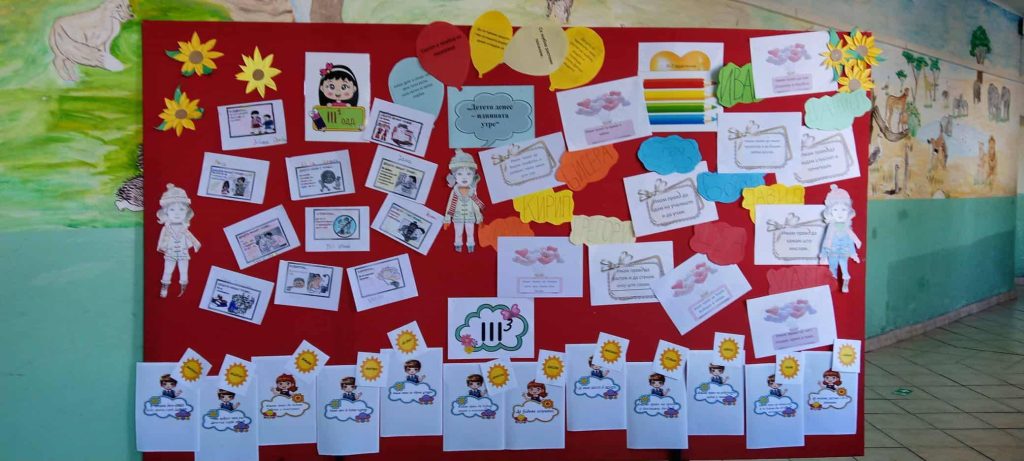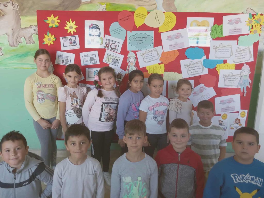 Во рамките на Детската недела, нашите насмеани ученици од III одделение при ООУ „Гоце Делчев“ со многу љубов и креативност изработија пано со пораки за детските права. ![]()