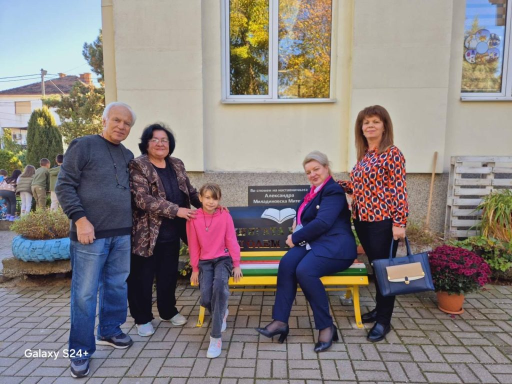 Денес во дворот на нашето училиште, беше поставена клупа во спомен на нашата покојна колешка Александра, која беше дел од наставничкиот кадар на ова училиште. Донацијата ја обезбеди нејзиното семејство и нашиот најблизок Ердован Етоски. Благодарност за големиот гест на директорката на училиштето Сузана Дерменџиева и вработените , за да овозможат да се случи овој чин. Тоа е еден прекрасен чин и почит кон нашата поранешна покојна колешка