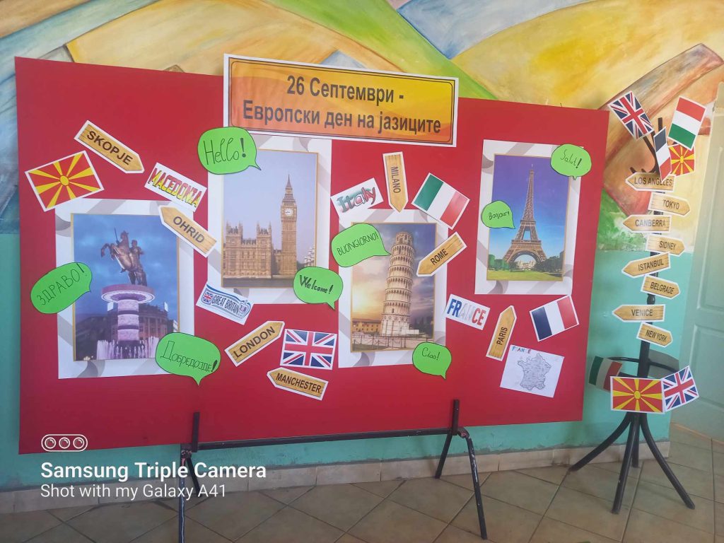 По повод Европскиот ден на јазиците, нашите ученици под менторство на нивните наставнички,изработија постери со најзначајните споменици од земјите чии странски јазици ги изучуваат :анлиски,италијански,француски и се разбира нашиот ,македонскиот јазик.